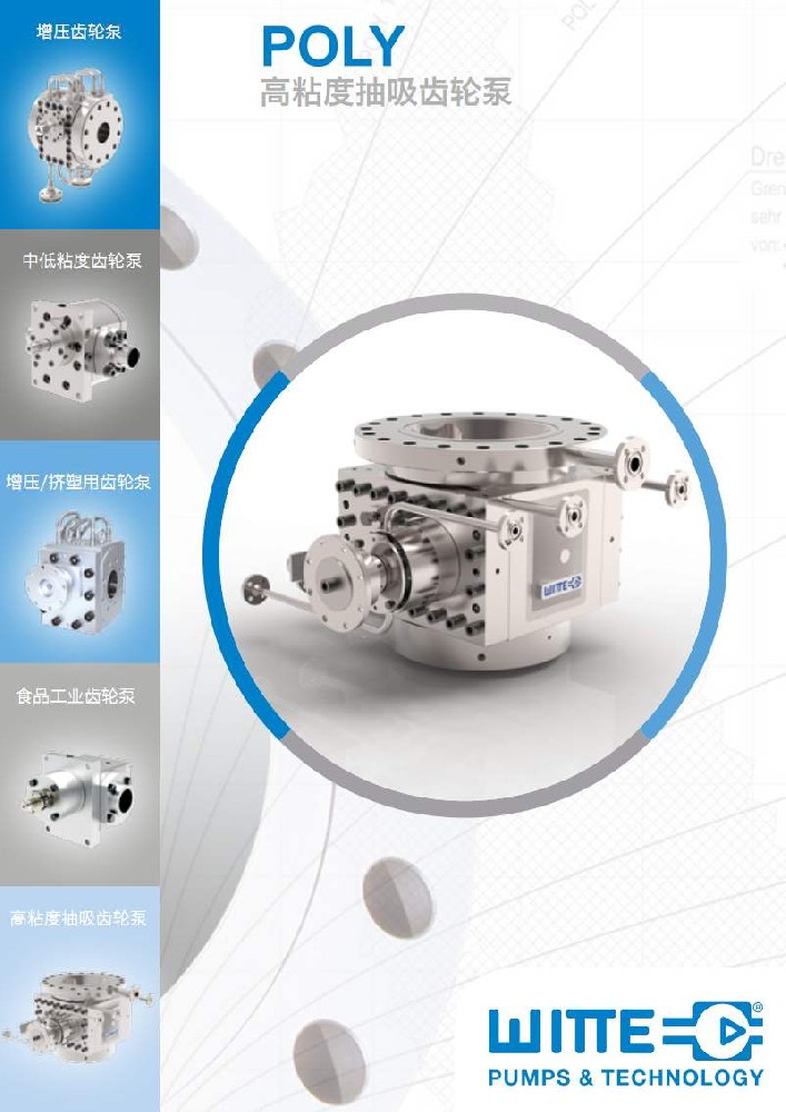 德国威特齿轮泵 WITTE PUMPS & TECHNOLOGY GmbH具有 CHEM /EXTRU/POLY/CHEM-MAGNET 等系列高精密产品,采用模块化针对性设计,根据泵的操作条件, CHEM /EXTRU/POLY 泵的零件具有可互换性。威特泵用户可根据实际需要,采取液相加热或电加热方式,密封可选择机械密封 , 填料密封, , 螺旋迷宫密封 ( 动密封 ) ,真空螺旋密封及特殊组合的密封配置。威特泵具有直齿、斜齿,以及威特**设计的高精度、低脉动、低温升、低剪切的人字形齿,针对不同的输送介质,在泵的材质选择上,威特可提供钛合金、铬镍合金、哈氏合金、钽合金,陶瓷,金属陶瓷的组合材质等。德国威特泵业技术有限乐竞电竞代表高黏度流体和熔体齿轮泵****技术。WITTE泵设计——“高精度人字型齿”,斜齿轮大幅度降低了平行外啮合齿轮在高压下的脉动。而对于挤压、聚合、合成、化工等工艺中,要求泵的出口压力波动非常小时,如在高质量的管材、**次的薄膜、片材挤塑机上,使用“高精度人字型齿”能够更**的**压力和流量的波动。与塑料及聚合物工艺的传统设计相比,在同等排量下,“高精度人字型齿”允许使用加粗的轴颈。此结构可以降低进出压力对轴承的负载,同时压差范围更大,可以达到350Bar,泵进出口两端在高压下工作时,轴承温升很低。人字型齿轮的另一特点是对介质的剪切力较小。